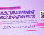 日期:2022年5月5日 会场:Online; 活动背景:《中华人民共和国进出口商品检验法》规定:商检机构和国家商检部门、商检部门指定的检验机构,依法对进出口商品实施检验。凡未经检验的进口商品,不准销售、使用,凡未经检验合格的出口商品,不准出口。