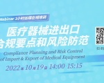日期:2022年10月19日; 会场:Online; 活动背景:近几年,我国的医疗器械进出口有了较大的发展,加上眼下医疗器械行业是倍受关注的行业,医疗器械的进出口也面临着更大的法律监管风险。因此,相关企业需要未雨绸缪,熟悉监管政策、了解合规风险,否则,在面对海关的质