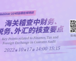 日期:2022年10月17日; 会场:Online; 活动背景:企业的财务和税务是海关稽查的基本目标和主要对象。为了有效应对海关稽查,进出口企业需要加强财务税务管理、完善财务规章制度、建立健全财务账册、提高财务管理水平。若在稽查中被发现有违规情事的,企业将面临被海关