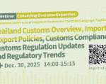 日期:2025年12月30日; 会场:Online In today's rapidly evolving global trade environment, a deep understanding of both international dynamics and specific national regulations is crucial for success. Thailand stands as a pivotal economy within Southeast Asia, with a complex trade landscape driven by its strategic location, diverse export portfolio, and a network of Free Trade Agreements (FTAs).